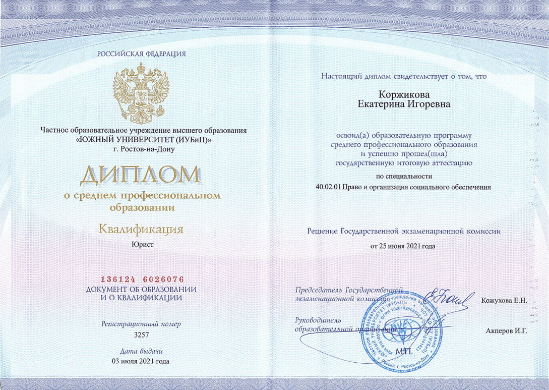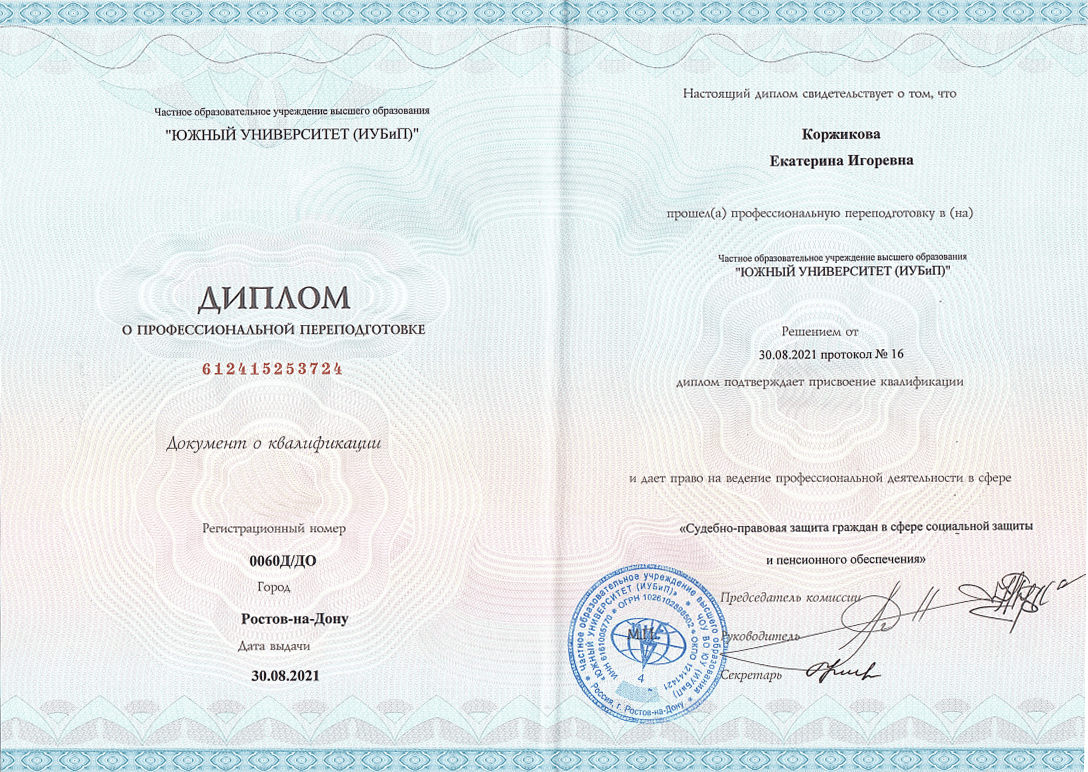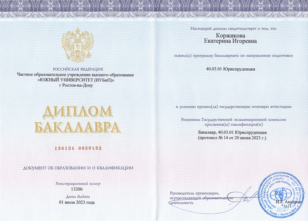Меня зовут Екатерина Игоревна, я дипломированный специалист в области права. Закончила бакалавриат в Институте Управления Бизнеса и Права и я не просто юрист, а ваш союзник в борьбе за справедливость. Для меня важен каждый клиент и его история. Моя цель — не просто решить вашу проблему, а вернуть вам спокойствие и уверенность. 5 лет спасаю клиентов от несправедливости и защищаю их права, помогу законно уволиться со службы, получить выплаты за ранения, оспорить заключения ввк и избавиться от долговых ям. Работаю только на результат — с индивидуальной стратегией и полной отдачей.
